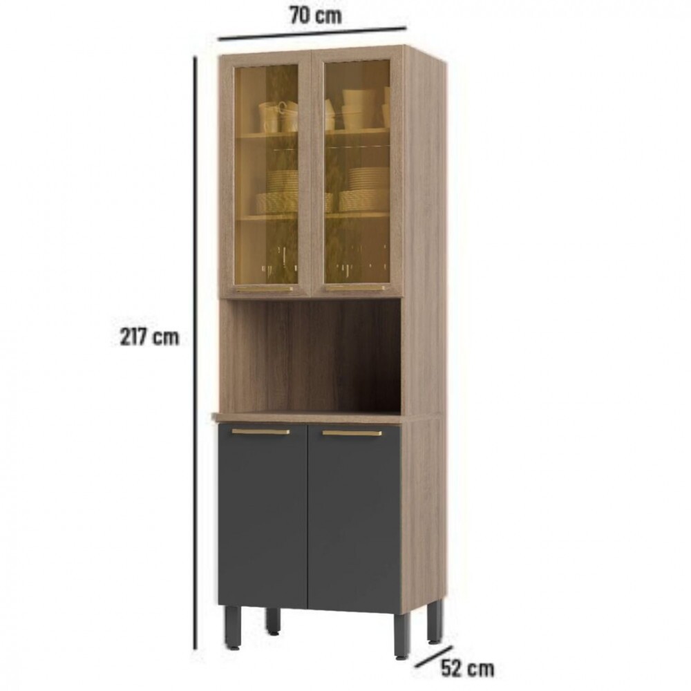 Paneleiro Torre Quente Avelã 70 cm 4 Portas C/2vidro Reflecta - Telasul
