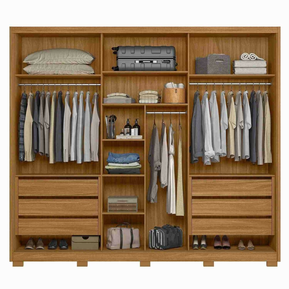 Guarda-Roupa 3 Portas de correr 6 Gavetas Arizona Freijó/Off White - Moval Móveis