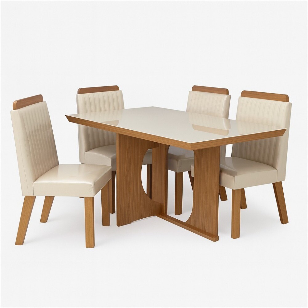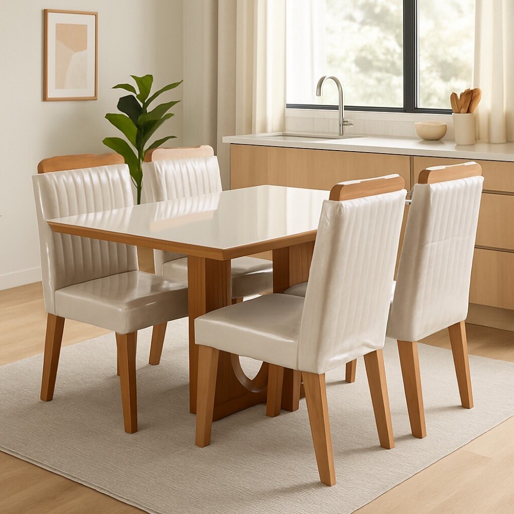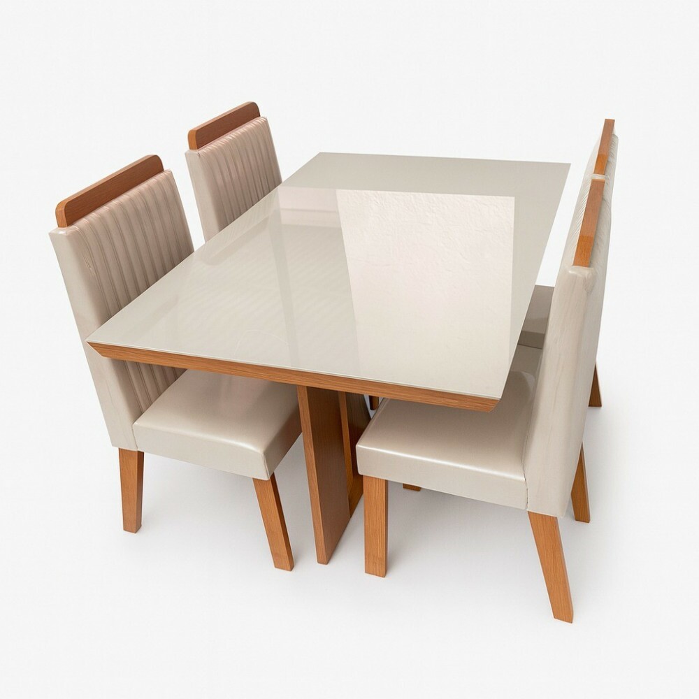 Que tal deixar sua sala de jantar mais sofisticada e confortável? Esse Conjunto de mesa Friza possui vidro Serigrafado sobre o tampo, as cadeiras tem estrutura 100% em MDF com assento e encosto estofados deixando assim mais confortável para reunir sua família, deixando seu ambiente ainda mais bonito.